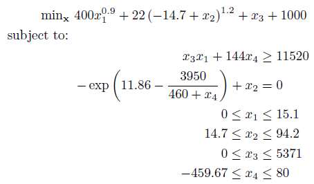 fun = @(x) 400*x(1)^0.9 + 22*(-14.7 + x(2))^1.2 + x(3) + 1000;
